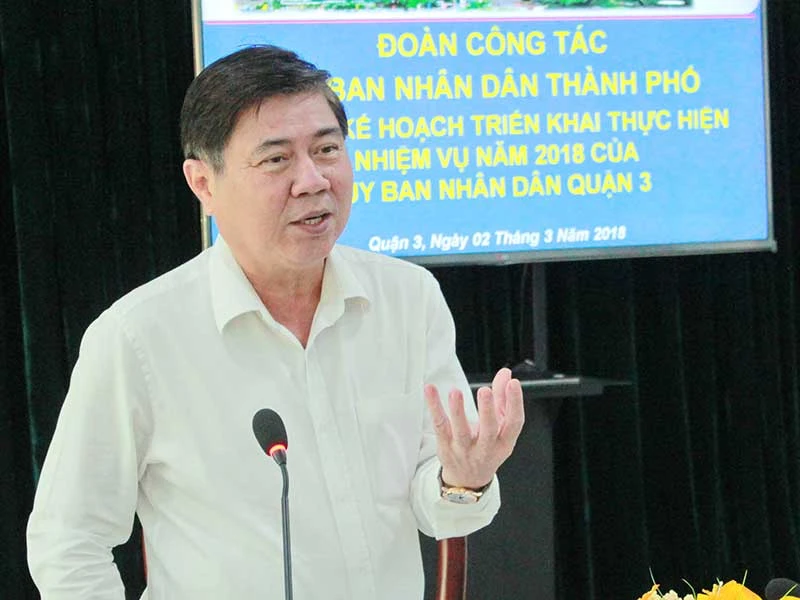Chiều 2-3, Chủ tịch UBND TP Nguyễn Thành Phong đã có buổi làm việc với UBND quận 3 để duyệt kế hoạch triển khai thực hiện nhiệm vụ năm 2018 của quận này.