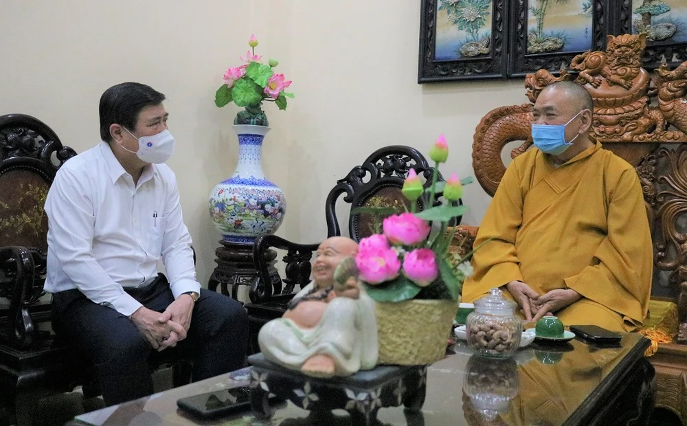 Ông cũng cảm ơn Giáo hội Phật giáo Việt Nam, Ban Trị sự Giáo hội Phật giáo Việt Nam TP.HCM đã luôn đồng hành, góp sức vào công cuộc phòng dịch của thành phố.