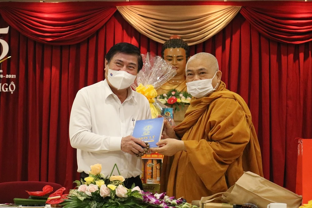 Chiều 18-5, đoàn lãnh đạo Thành ủy, UBND, HĐND, UBMTTQ TP.HCM do ông Nguyễn Thành Phong, Phó Bí thư Thành ủy, Chủ tịch UBND TP làm trưởng đoàn đã đến thăm, chúc mừng các tổ chức, cá nhân chức sắc, chức việc tiêu biểu nhân Đại lễ Phật đản, Phật lịch 2565 - Dương lịch 2021 tại một số cơ sở Phật giáo trên địa bàn Thành phố.