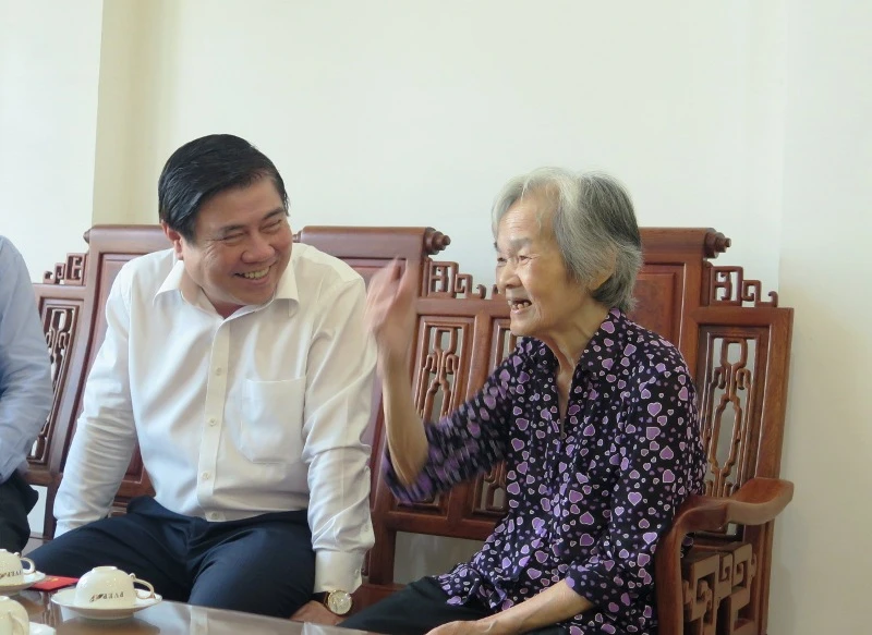 Chiều cùng ngày, Chủ tịch UBND TP Nguyễn Thành Phong cũng đến thăm và chúc Tết bà Lê Nguyễn Hồng Minh (81 tuổi, quận 1). Bà Minh là con gái cố Tổng bí thư Lê Hồng Phong.