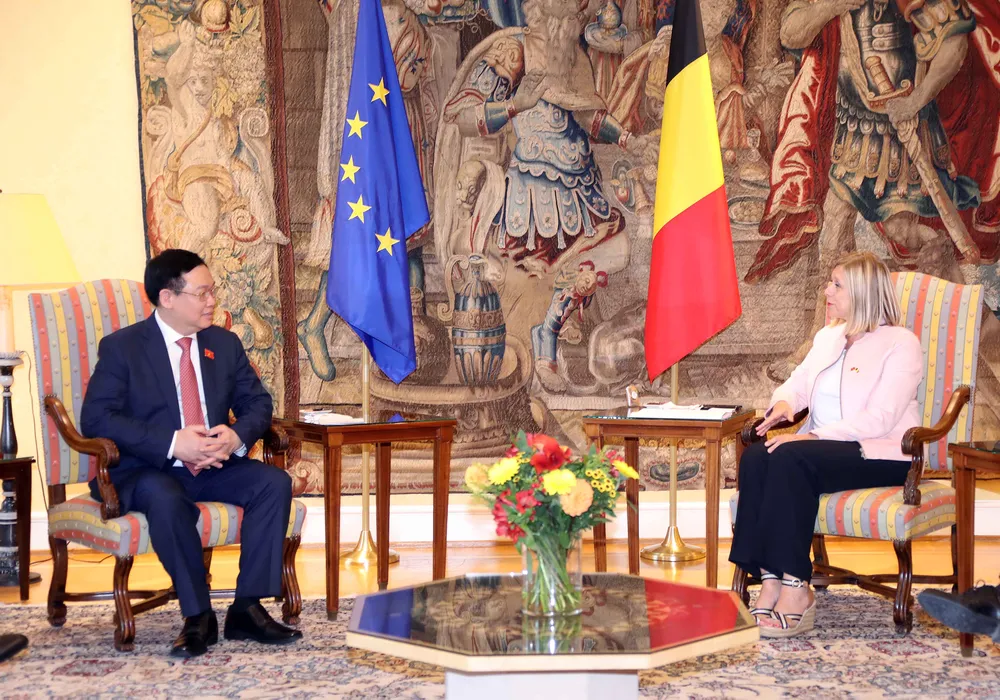 Tại cuộc gặp, Chủ tịch Hạ viện Bỉ Eliane Tillieux bày tỏ vui mừng chào đón Chủ tịch Quốc hội Vương Đình Huệ tại Brussels.