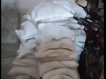 Nhiều bao gạo được chứa trong nhà. Ảnh: MXH