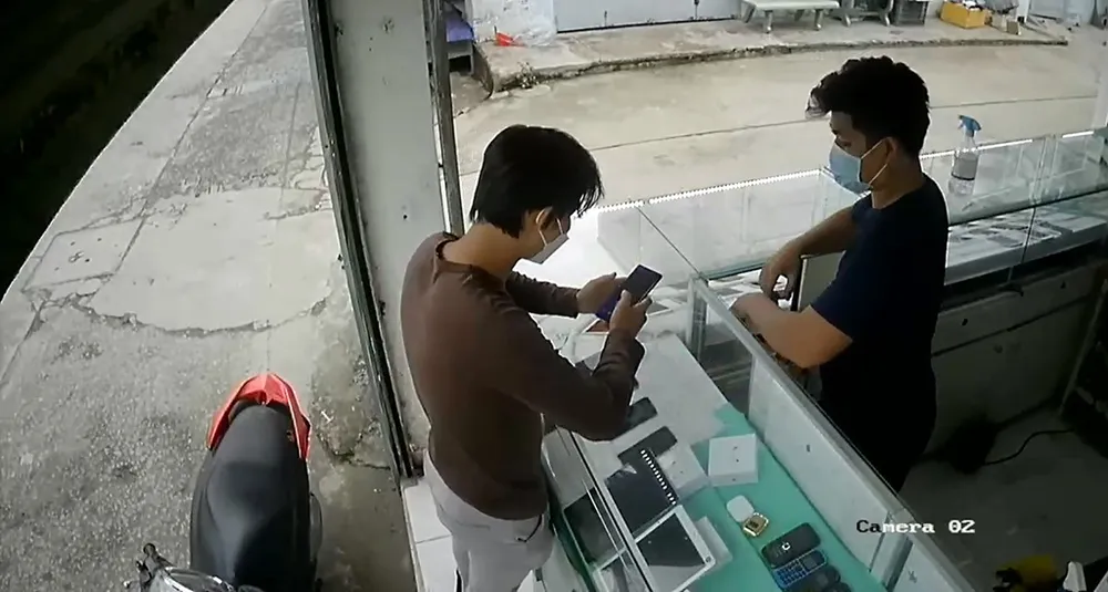 Anh D. lấy chiếc điện thoại hiệu Samsung đưa cho khách xem, khi vừa quay lưng lại thì nam thanh niên cầm chiếc điện thoại lên xe bỏ chạy.