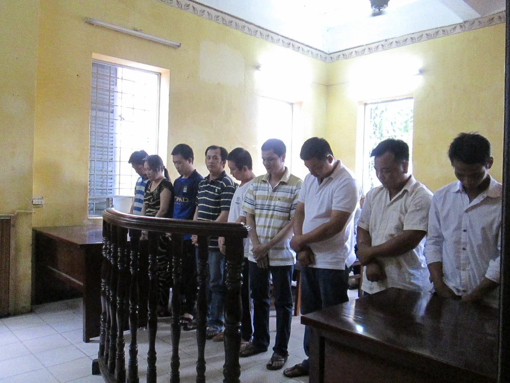 Tại phiên sơ thẩm tòa đã tuyên phạt Võ Đức Minh 9 năm tù, Nguyễn Quốc Huy 8 năm tù, Trần Mỹ Ngọc 7 năm tù cùng về tội trộm cắp tài sản; Nguyễn Hữu Lành 4 năm tù, Bành Chên Tan hai năm tù, Trần Đăng Đạo và Trần Thanh Sơn mội bị cáo một năm sáu tháng tù, Nguyễn Duy Quốc hai năm tù treo, Nguyễn Thanh Hòa một năm sáu tháng tù treo và Nguyễn Văn Hôn một năm tù treo cùng về tội tiêu thụ tài sản do người khác phạm tội mà có. Ngoài ra, tòa còn buộc các bị cáo cùng liên đới bồi thường cho các bị hại hơn 230 triệu đồng.