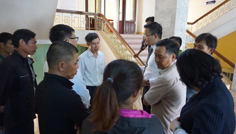 Người dân và các luật sư vào làm việc với chánh án TAND tỉnh Kon Tum. Ảnh: NGÂN NGA