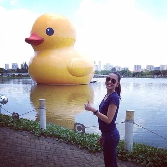 Trên instagram của mình, nữ diễn viên Tăng Thanh Hà cũng đã đăng tải bức ảnh chụp bên cạnh chú vịt cực dễ thương này.
