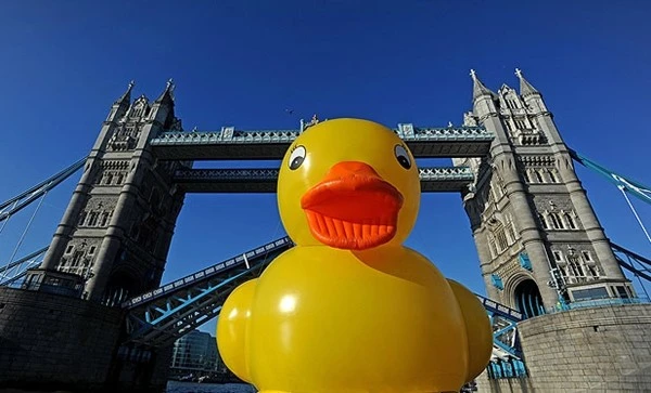 Chú vịt vàng khổng lồ cùng cha đẻ của mình là nghệ nhân người Hà Lan Florentijn Hofman từ năm 2007 đã đi vòng quanh thế giới với mục đích khơi gợi lại những kí ức tuổi thơ hồn nhiên, đẹp đẽ trong mỗi con người. Nổi bật trên dòng sông Thames.