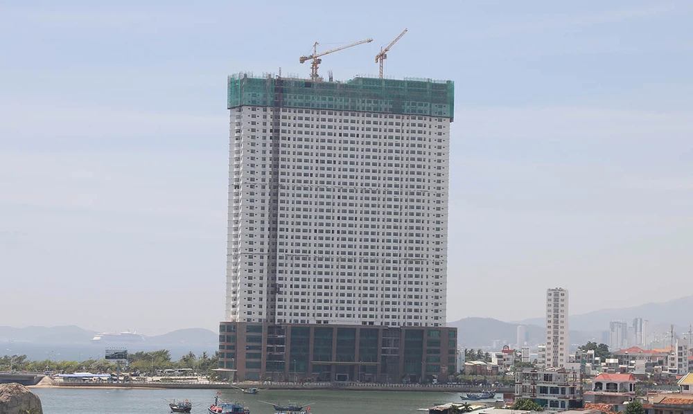 Công trình cao ốc Mường Thanh Khánh Hòa đang cắt bỏ các tầng xây vượt. Ảnh: TL