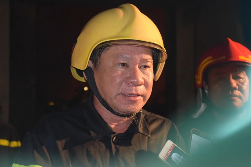 Đại tá Lê Tấn Bửu, Giám đốc Cảnh sát PC&CC TP HCM trực tiếp tới hiện trường chỉ đạo. Ảnh: NGUYỄN TRÀ