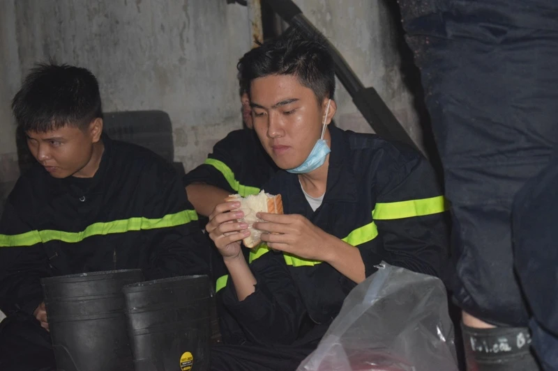 Thức ăn được tiếp tế, là bánh bao mì tôm, mọi người thay nhau vào ăn để lấy sức chiến đấu tiếp. Tranh thủ nghỉ ngơi ăn uống chút xíu, em và đồng đội lại vào tiếp tục trở lại công việc.