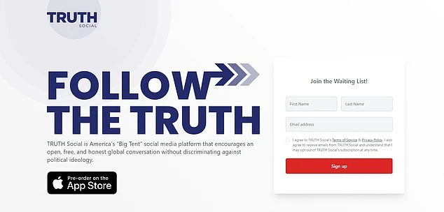Giao diện đăng nhập của mạng xã hội TRUTH Social của cựu Tổng thống Donald Trump. Ảnh: GOOGLE