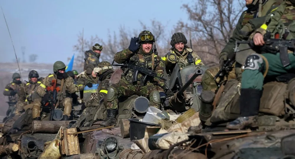 Quân đội Ukraine di chuyển gần Debaltseve, miền đông Ukraine vào ngày 12-2 (Nguồn: Sputnik News)