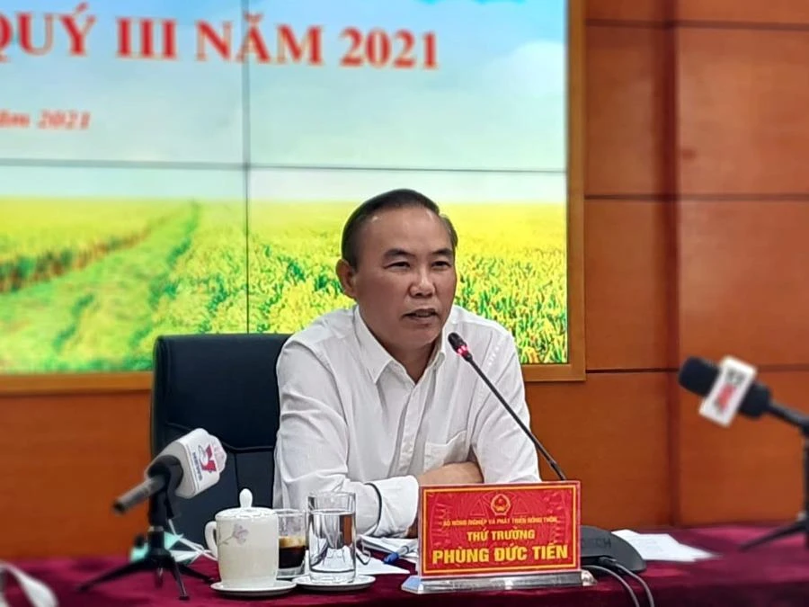 Thứ trưởng Bộ NN&PTNT Phùng Đức Tiến thông tin tại buổi họp báo. Ảnh: AH