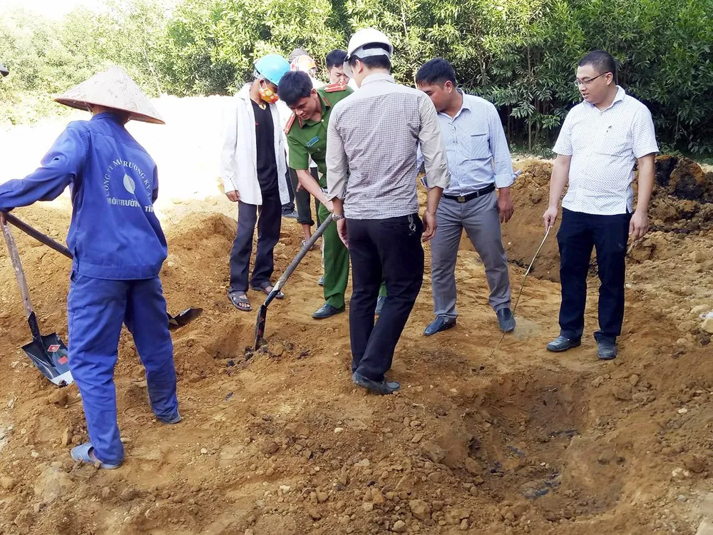 Khai quật số chất thải của Formosa Hà Tĩnh mà Công ty Môi trường Đô thị Kỳ Anh chở về lấp vào trang trại.