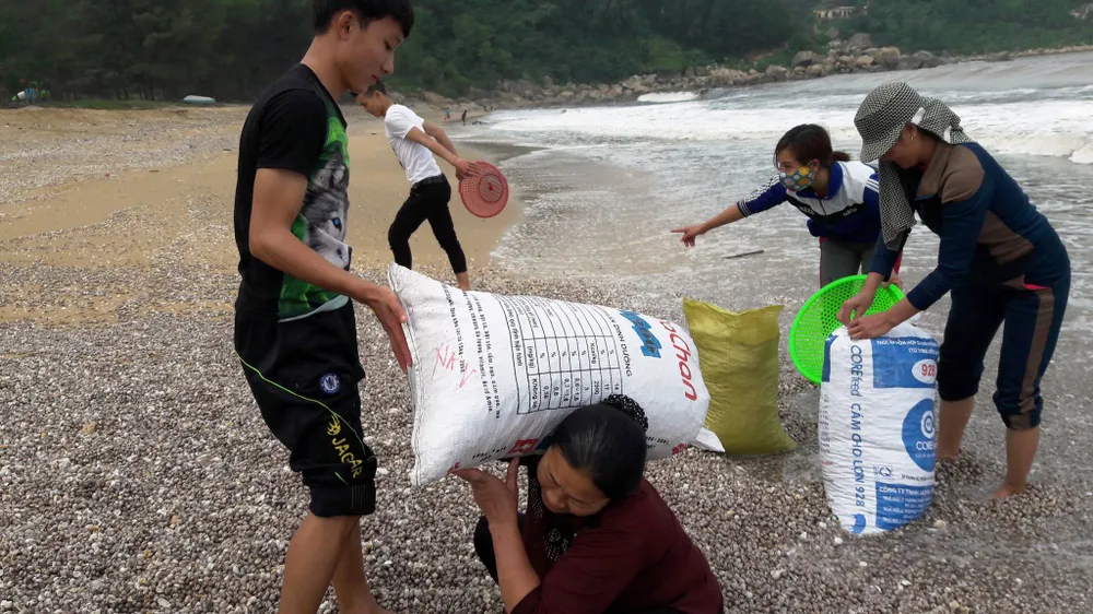 Sò lông dạt vào bờ biển Hà Tĩnh.