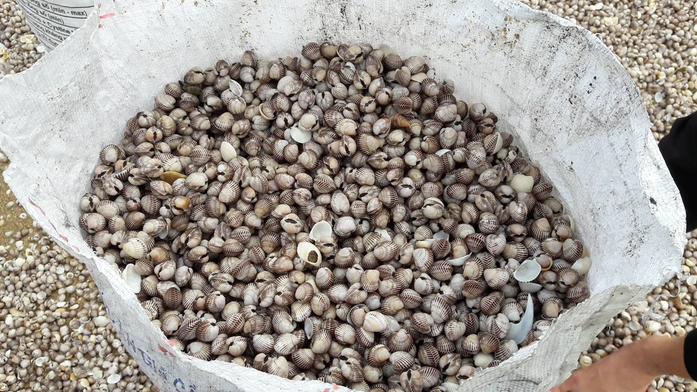 Có ngày sò lông dạt vào dày đặc, trắng cả bãi biển. Mỗi ngày người dân nơi đây vớt được hàng tạ sò lông mang đi bán. Giá 1 kg sò lông 20.000-30.000 đồng.