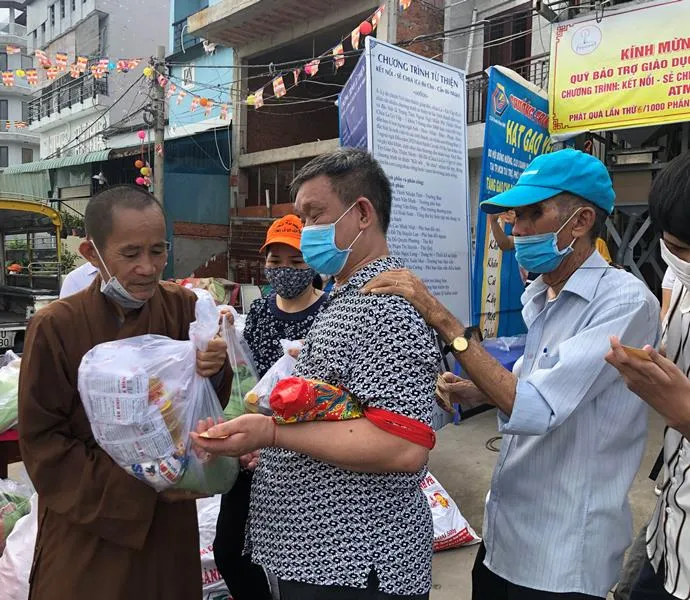 "Trong cơn đại dịch, nhiều người bán vé số, bán hàng rong, sinh viên, người bị bệnh tật rơi vào hoàn cảnh khó khăn do không có thu nhập. Từ đó, chùa cùng các mạnh thường quân chung tay gom góp để giúp họ vượt qua thời điểm khó khăn này, để họ vững tâm trên đường mưu sinh. Tuy nhiên, trong dòng người ấy có người tâm không tốt, họ đã scan phiếu do chùa phát ra để nhận quà. Phát hiện điều này chùa đã cảnh báo và họ tự nhận thấy lương tâm không cho phép nên đã tự rút đi" - vị trụ trì chùa Lá chia sẻ.