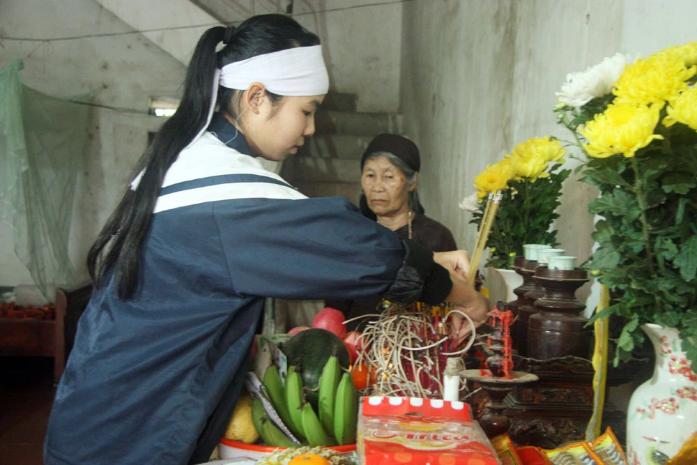 Tới thắp hương cho hai vợ chồng anh Anh và chị Ngoan, cô giáo Trần Thị Huyền, giáo viên Trường THCS số 1 Mai Đình, chia sẻ với chúng tôi: “Khi biết hung tin, tôi cùng lãnh đạo nhà trường cũng tới có thẻ nhang kính viếng vong hồn anh chị ấy, động viên mấy bà cháu gắng vực dậy tinh thần”.