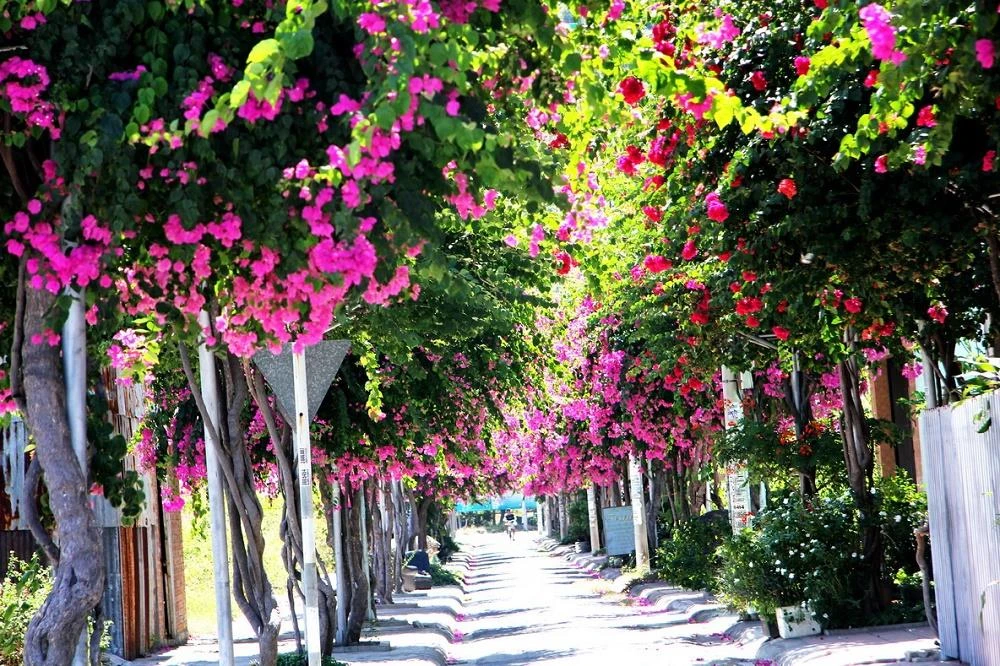 Nha Trang còn đó những điểm du lịch miễn phí như con đường hoa giấy Trần Đường ở xã Phước Đồng. Cách không xa là hồ sen Đảm Tràm Chim chẳng thu một đồng nào của bạn vẫn đẹp ngất ngây lòng người.