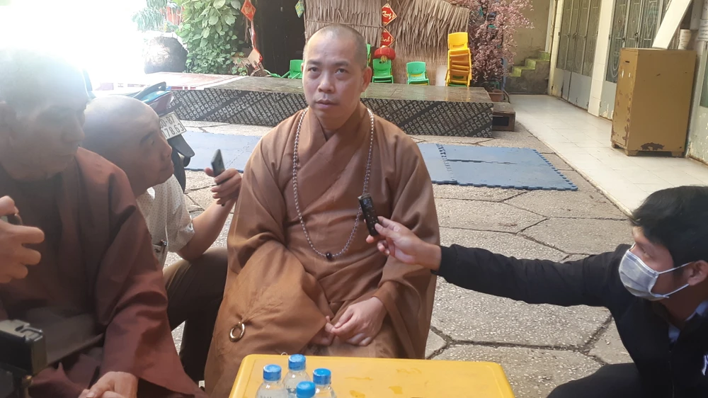 Thượng tọa Thích Quang Thạnh trao đổi thông tin với báo chí: ảnh: NGUYỄN HIỀN