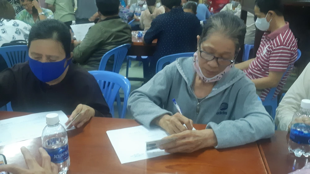 Thân nhân người mất gửi hũ tro cốt tại chùa Kỳ Quang 2 điều phiếu đăng ký : Ảnh: NGUYỄN HIỀN
