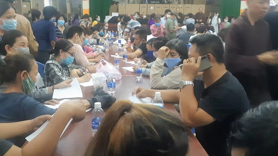 Hàng trăm người đến dự họp buổi chiều nay tại chùa Kỳ Quang 2. Ảnh: NGUYỄN HIỀN