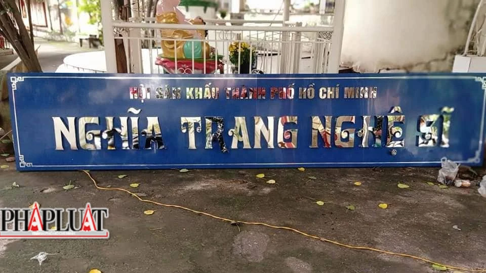 Biển chùa Nghệ sĩ được thay bằng Nghĩa trang nghệ sĩ, kèm theo tên Hội sân khấu TP.HCM, hôm 18-6. Ảnh: Vũ Vũ/VNE |