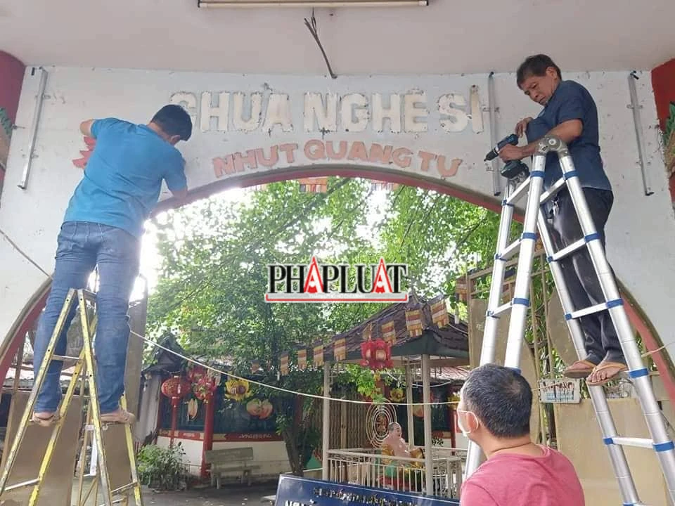 Tuy nhiên, ngay khi vừa đến chùa, phóng viên phát hiện bảng "Nghĩa trang nghệ sĩ" đang được phía chùa gỡ xuống.