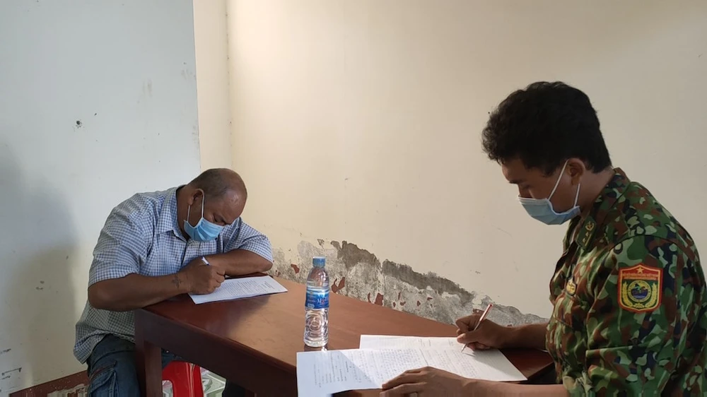 Lực lượng Biên phòng làm việc với Nguyễn Văn Hạnh. ảnh: LĐ