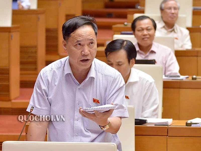 Đại biểu Quốc hội Mai Văn Bộ đang chất vấn Bộ trưởng Nguyễn Ngọc Thiện về thông tin một số quan chức đóng cổ phần vào việc xây dựng chùa BOT... Ảnh: QH