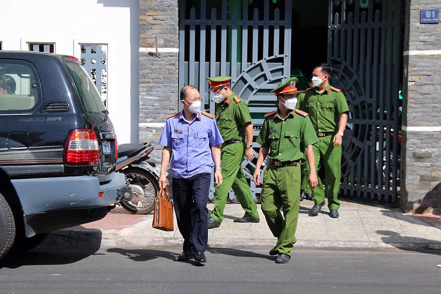 Cơ quan tố tụng khám xét nhà ông Lương Văn Hải, nguyên phó chủ tịch thường trực UBND tỉnh Bình Thuận. Ảnh: BPN