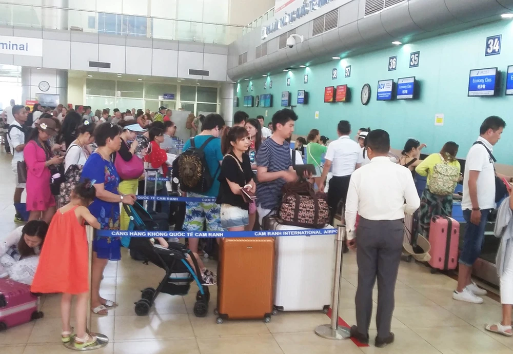 Làm thủ tục xuất cảnh tại Cảng Hàng không quốc tế Cam Ranh. Ảnh: ĐẠI QUANG