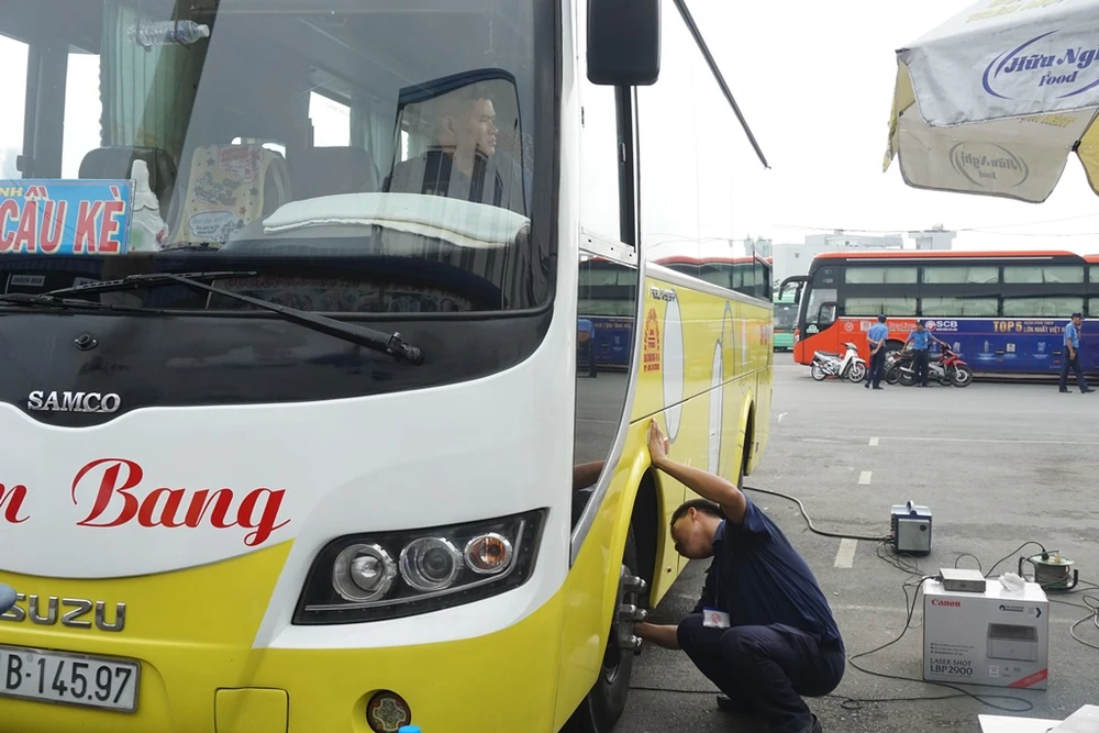 Theo đại diện Trung tâm Đăng kiểm xe cơ giới 50-07V, đoàn kiểm tra kiểm tra cả khí thải của xe buýt, xe khách có tuyến hoạt động ở bến xe để đảm bảo an toàn khí thải và môi trường.
