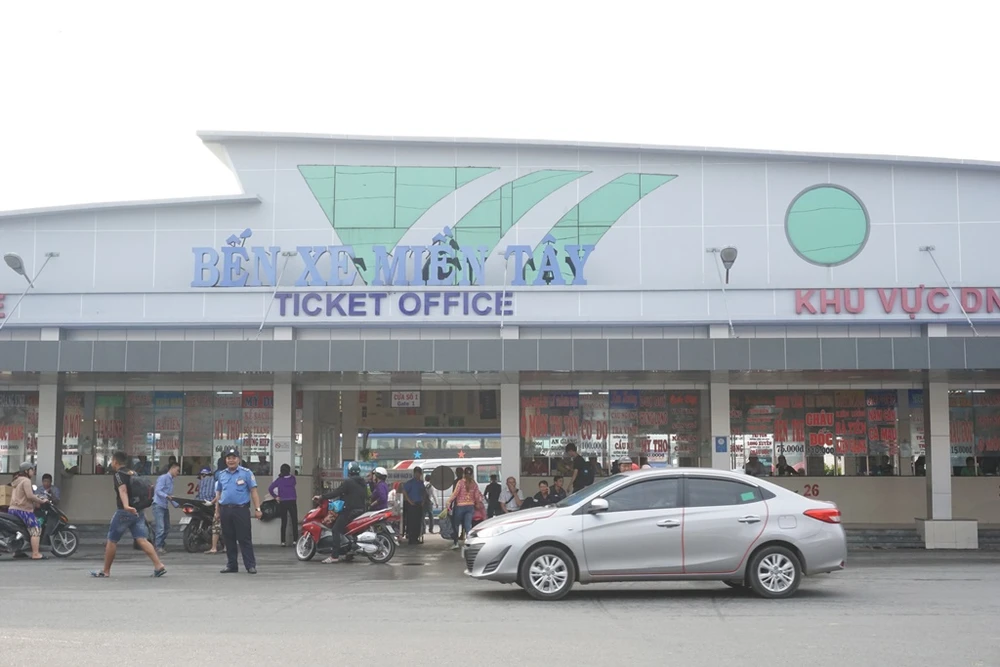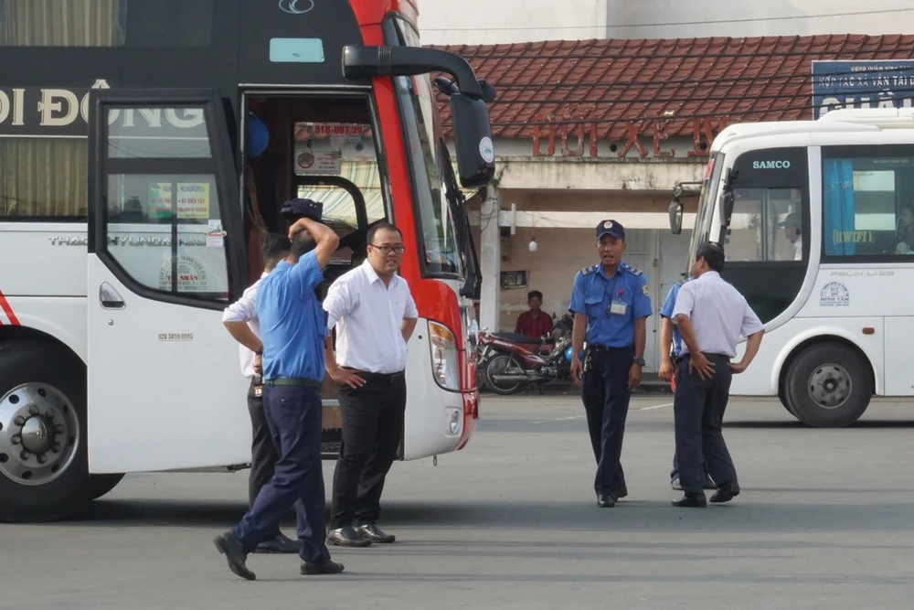 Phòng điều hành Bến xe Miền Tây tổ chức lại giao thông tại bến xe, tạo điều kiện cho đoàn thanh tra tiến hành kiểm tra khí thải.