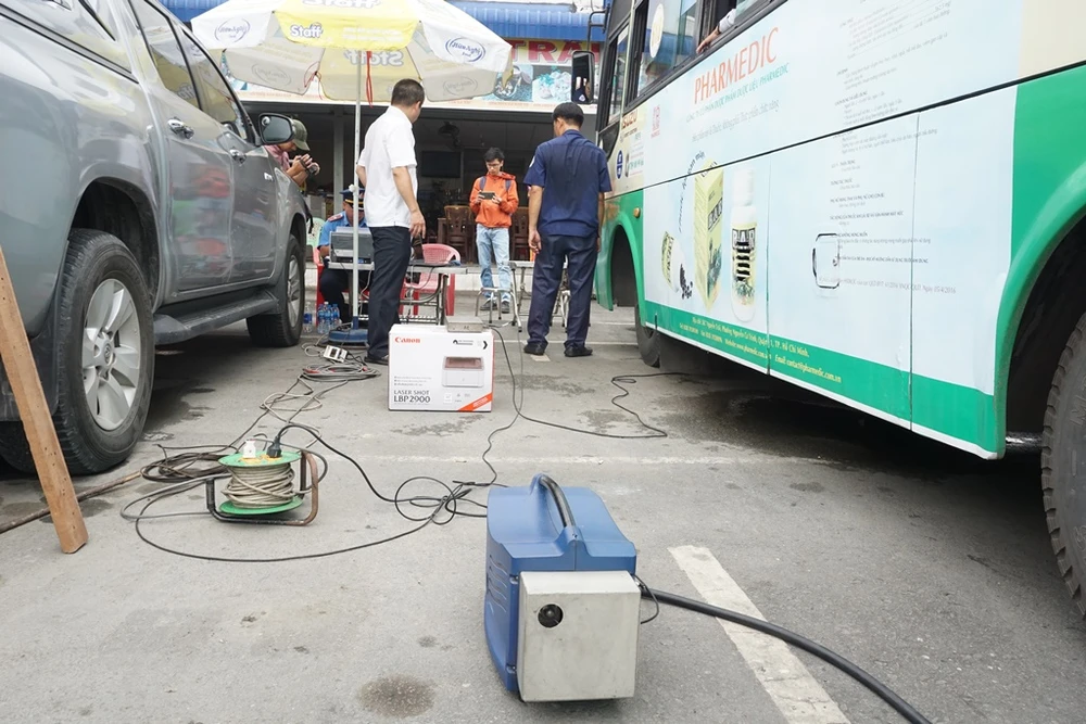 Máy móc kiểm tra khí thải đã được lắp đặt sẵn sàng.
