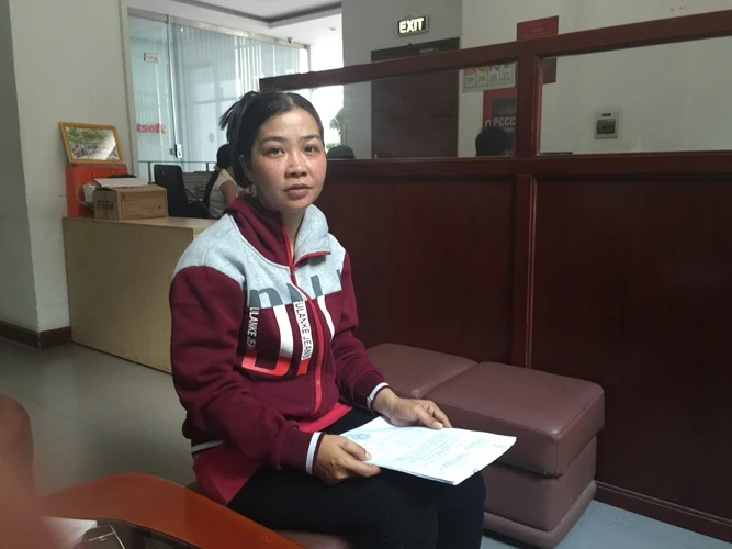 Chị Trịnh Kim Liên tại báo Pháp Luật TP.HCM trình bày về cái chết nhiều uẩn khúc của chồng mình.