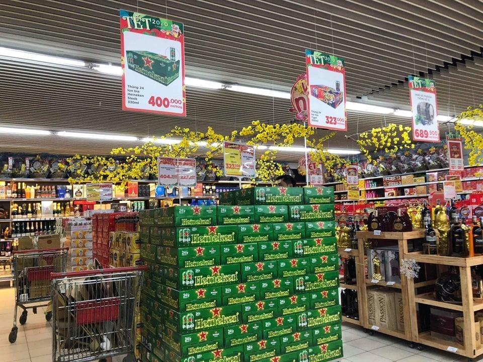 Trong khi đó, giá bán tại các siêu thị lại có xu hướng rẻ hơn từ 10.000-20.000 đồng so với đại lý nhờ vào các chương trình khuyến mãi, hoặc bình ổn giá. Đơn cử như ở BigC, siêu thị này giảm từ 10%-49% giá thành cho mặt hàng bia và nước ngọt. Mức giảm sẽ tùy vào thời điểm và từng thương hiệu khác nhau.