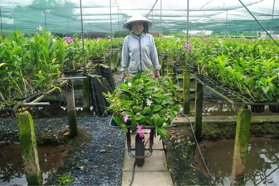 Với 4000m2 chuyên trồng lan Dandrobium, ông Nguyễn Văn Thọ (ngụ tại ấp 2, xã Bình Chánh) cho hay: “Nhìn vườn còn nhiều cây vậy thôi, chứ chúng đã có chủ. Vườn của tôi có 80.000 chậu lan, tuy nhiên từ tháng 10, 11 âm lịch, số cây này đã được bán hết cho các thương lái ở khắp mọi nơi như khu vực miền Tây Nam Bộ, Huế, Đà Nẵng… Hiện tại vườn của tôi chỉ còn những chậu lan mới trồng chưa đến tuổi, thiếu tháng”.