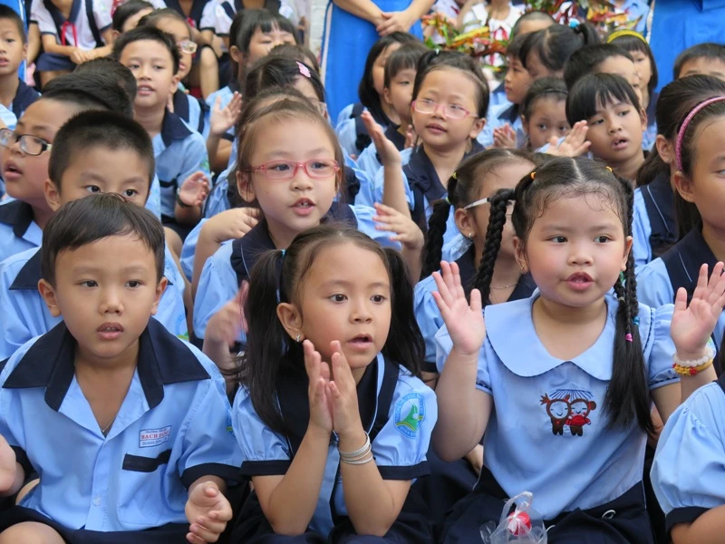 Học sinh tiểu học tại TP.HCM phấn khởi trong ngày khai giảng năm học 2015-2016
