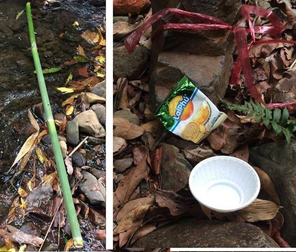 Nhiều thiết bị bay flycam cũng huy động để tìm kiếm sau đó đã phát hiện vỏ nylon và hai bịch cà phê của Kiện vứt hoặc rơi lại gần khu vực thượng nguồn thác Lao Phào.