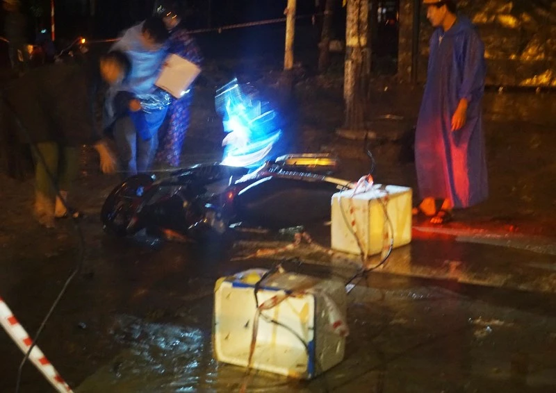 Đến trước chợ Hòa An, anh Huy cầm sợi dây điện vắt ngang đường định giở lên để chui qua thì bị giật tử vong. Người vợ được nam thanh niên đi phía sau kéo ra và được cứu sống.