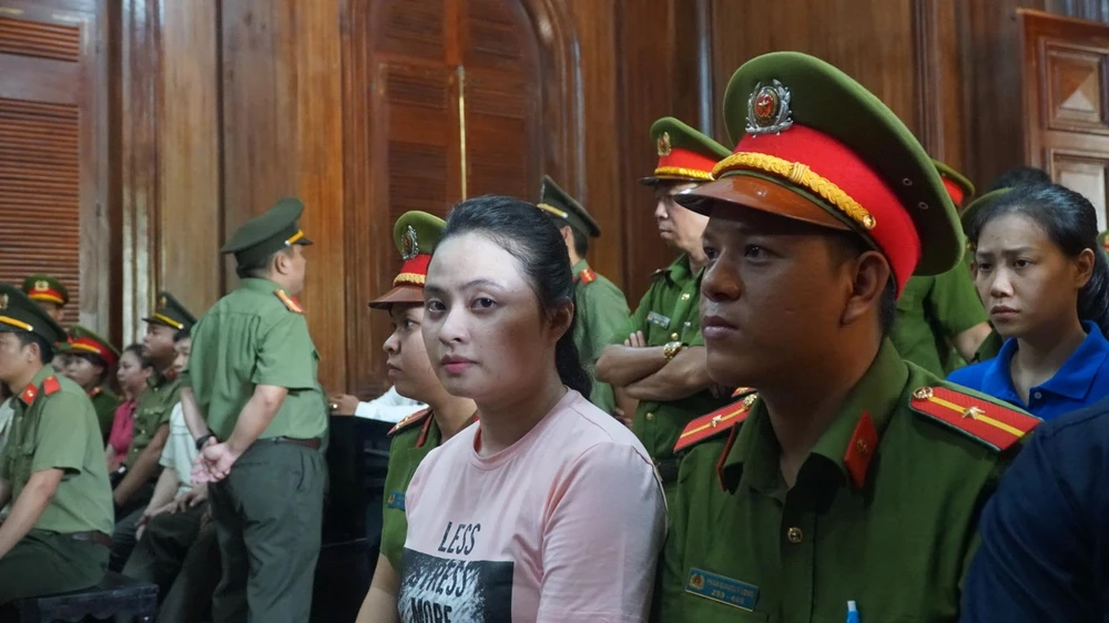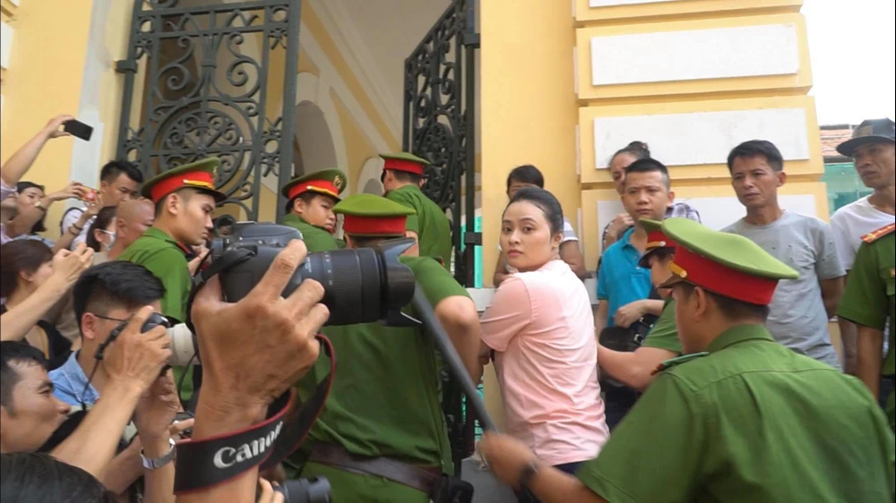 Ngọc Miu được dẫn giải vào phòng xử. Ảnh: QUANG DUY