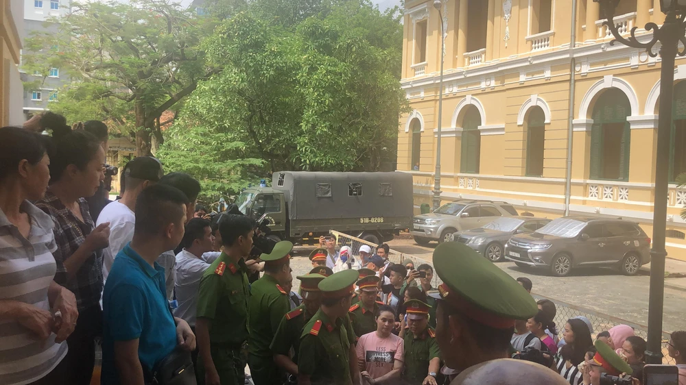 Hiện PV báo đài vẫn chưa được vào phòng xử do bộ phận an ninh đang làm công tác kiểm tra nhân thân người tham dự phiên xử.