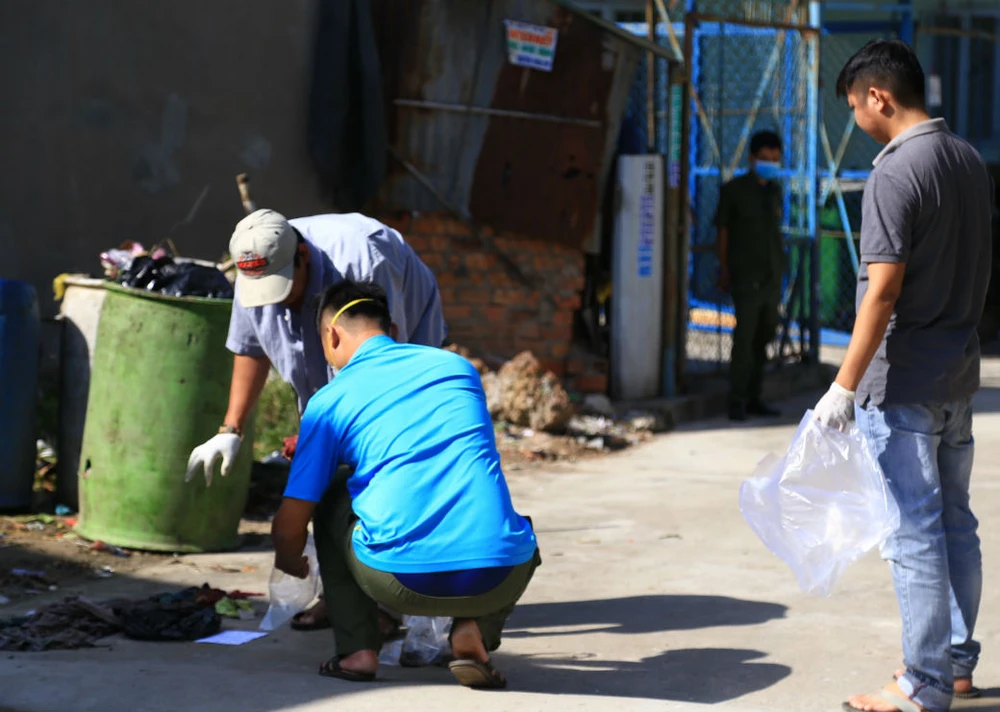 Lực lượng công an tìm thấy nhiều phần thi thể của nạn nhân gần thùng rác khu nhà trọ của nghi can. Ảnh: Vũ Hội