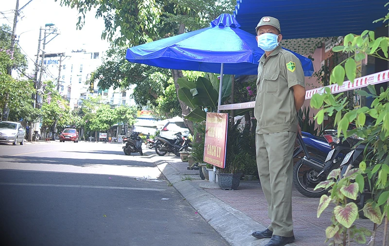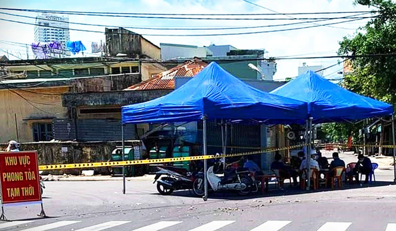 Phong tỏa khu dân cư có người mắc COVID-19 ở phường Hải Cảng, TP Quy Nhơn. Ảnh: NO