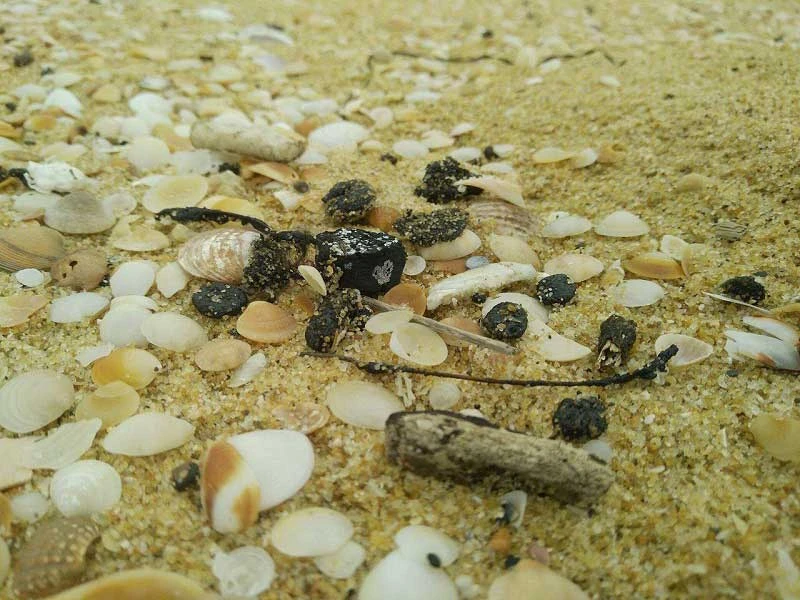 Gần chục cây số dọc bãi biển từ xã Tam Quang đến xã Tam Nghĩa của huyện Núi Thành, Quảng Nam xuất hiện rất nhiều mảng nhựa đường và dầu vón cục từ bờ ra biển gần 200 m. Bên cạnh đó, bãi biển cũng xuất hiện hàng ngàn vỏ chai, bao bì, bao thuốc lá có nhãn mác bằng chữ Trung Quốc bị sóng đánh tấp vào bờ gây ô nhiễm.
