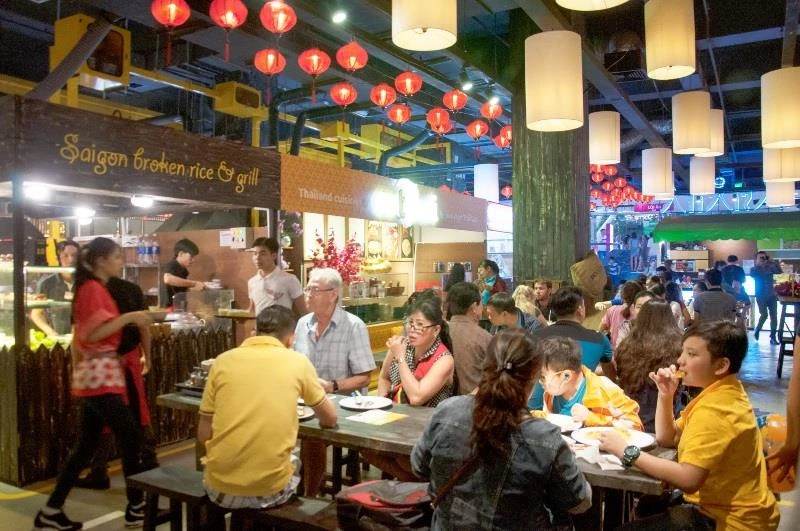 Chợ dưới lòng đất Sense Martket hội tụ hàng trăm món ăn Âu Á thu hút người dân TP.HCM cũng như du khách khi đến đây.