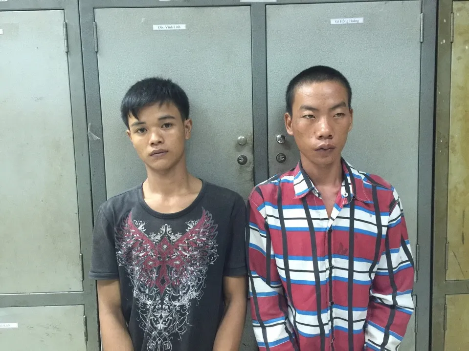Trần Văn Quang và Nguyễn Thanh Hùng, hai nghi can bị bắt trong vụ cướp nhân viên khách sạn TL - Ảnh: CA