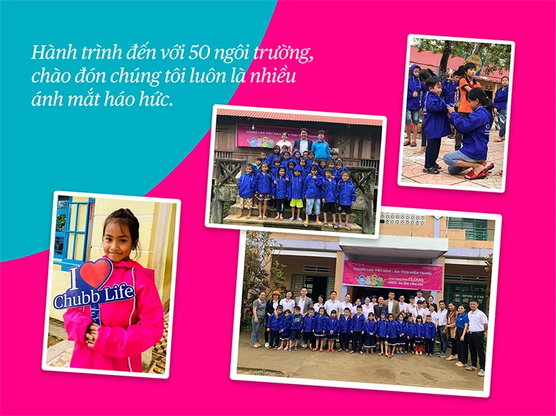 Đánh vần còn chưa rõ chữ, các em ở lớp 1/3, Trường Tiểu học Hà Trung (ở Thừa Thiên - Huế) đã cùng đồng thanh “Cám ơn Chubb Life”, làm chúng tôi vừa vui và vừa xúc động. Chính những nụ cười ấy, những câu nói ngây thơ ấy, là điều mà chúng tôi, những thành viên mang màu áo Chubb Life Việt Nam cảm thấy ấm lòng biết mấy và tin tưởng rằng những món quà nhỏ này còn giúp các bậc cha mẹ bớt đi phần nào lo lắng, thêm chút niềm vui khi các con có những chiếc áo ấm tinh tươm cắp sách đến trường.