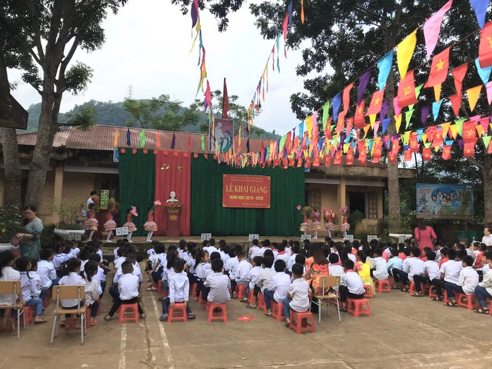 Các học sinh Trường tiểu học Phú Thanh trong buổi khai giảng năm học mới.